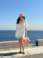 Made from a soft linen mix material, this set includes a comfy short and shirt.