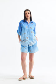 Made from a soft linen mix material, this set includes a comfy short and shirt.
