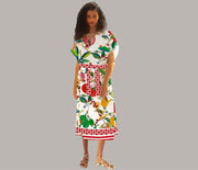 Red fruit kaftan dress